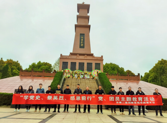 4月2日,三分公司銅陵吾悅?cè)A府項(xiàng)目黨支部開(kāi)展“學(xué)黨史、祭英烈、感恩前行”主題活動(dòng)。